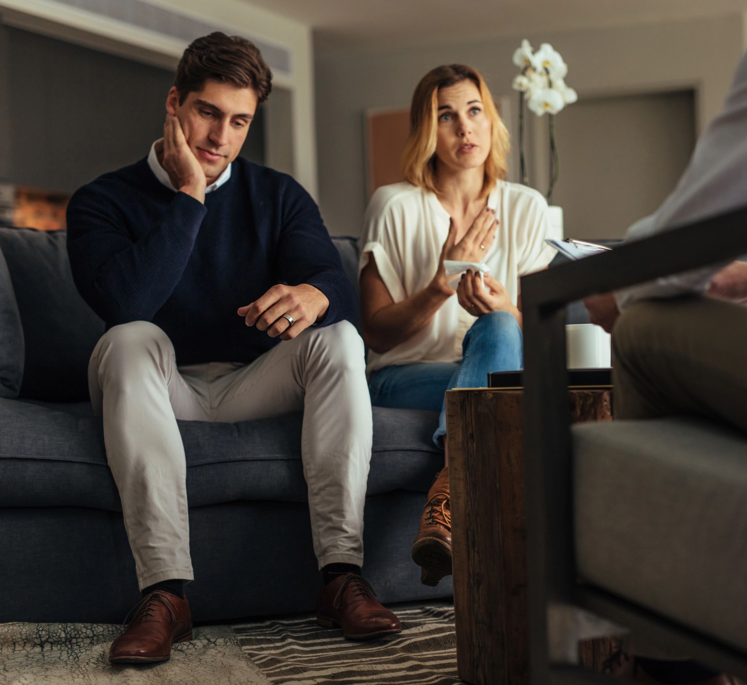 In person meetings are recommended for couples in crisis. Initial meetings may require an additional half or full session.